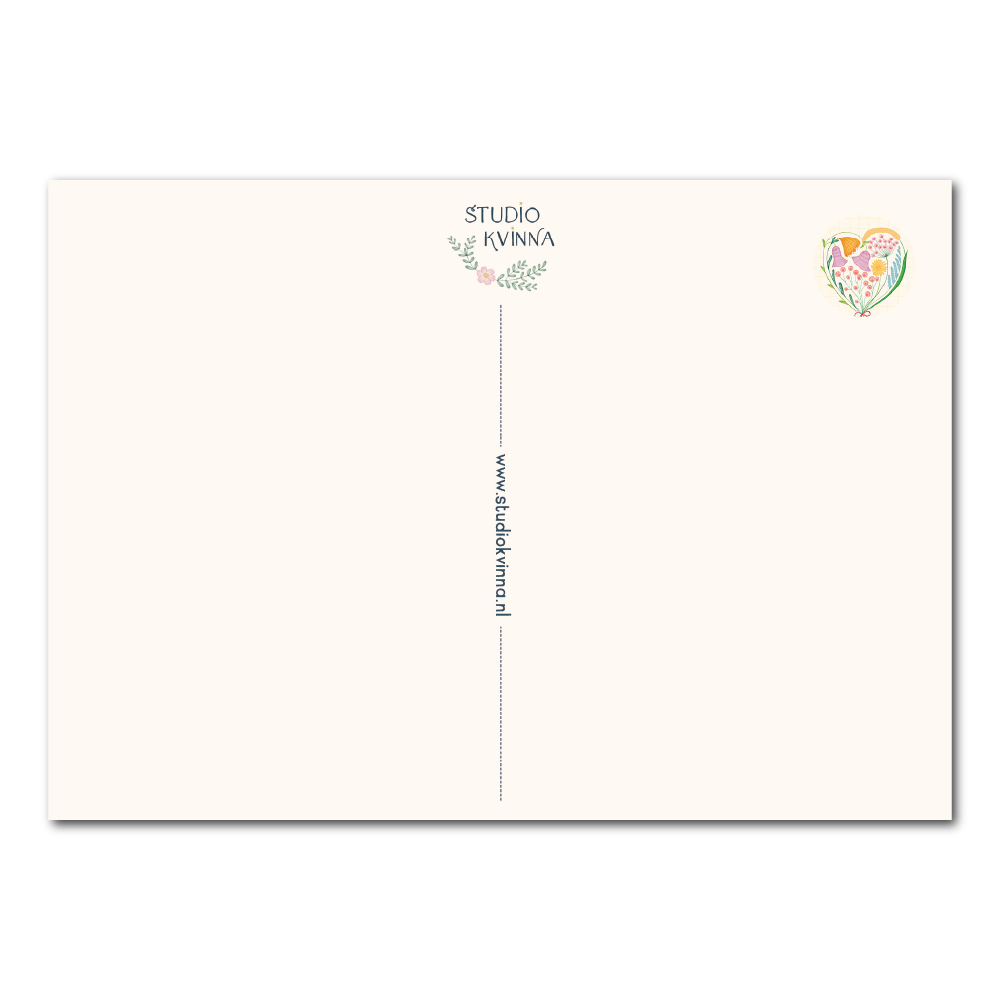 De achterkant van de kaart is minstens zo belangrijk als de voorkant, vind ik. Want dit is de plek waar jij je mooie boodschap kwijt kunt. Zoals je ziet is er genoeg ruimte voor jouw tekst én voor het adres. Of je stopt de kaart in een envelop, dan kan je helemaal los :)