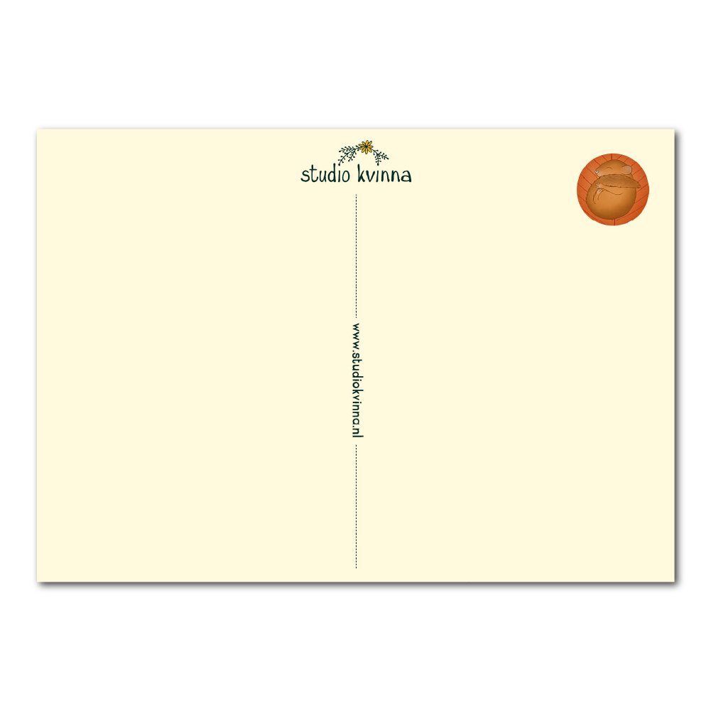 De illustratie is met de hand getekend door mij, Femke Hesselink. Het formaat van de kaart is A6, gedrukt op stevig FSC papier en de achterkant is goed beschrijfbaar.