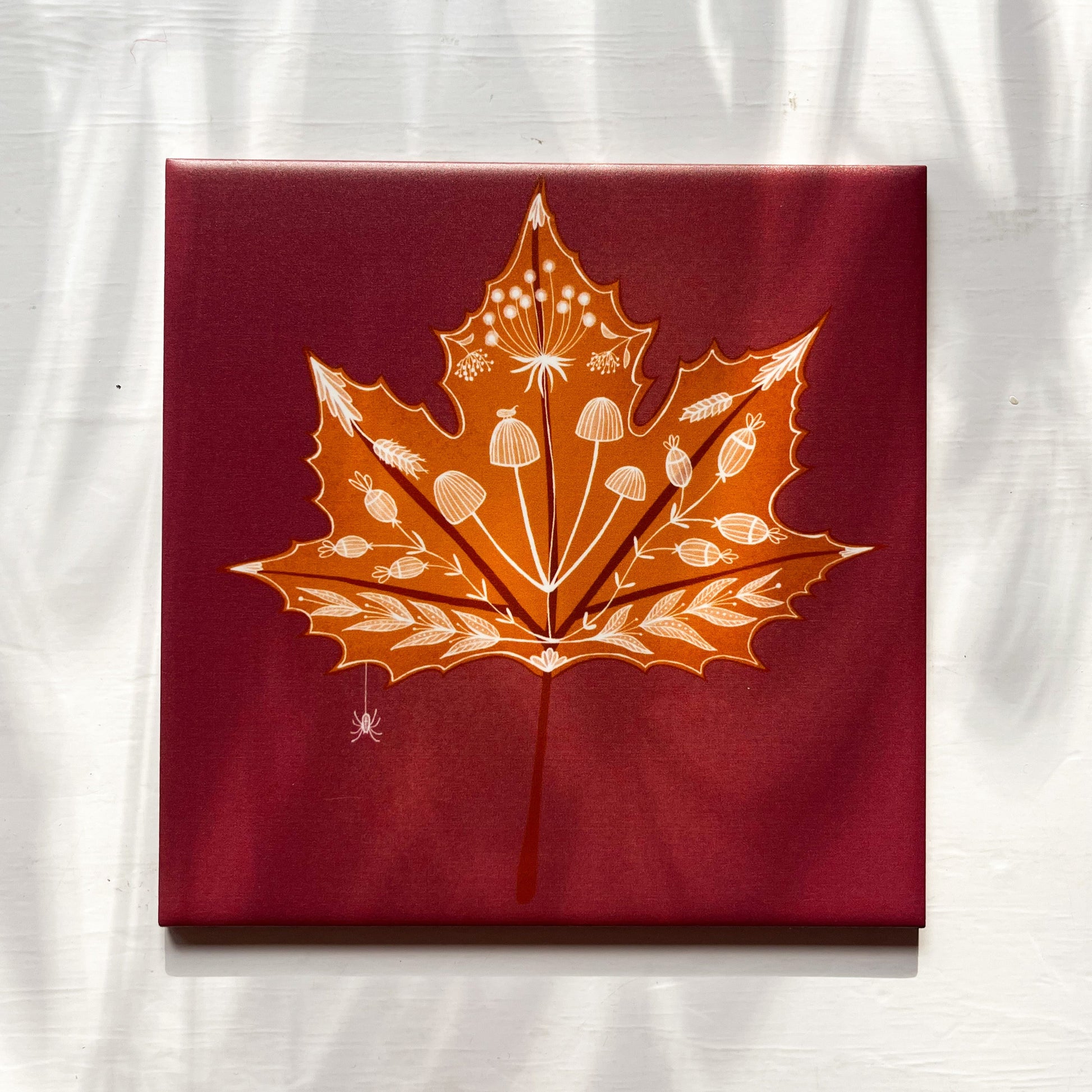 Haal de herfst op een bijzondere manier in huis met deze decoratieve tegel. Het herfstblad heeft een botanische tekening en de kleuren, warm en roestbruin, passen helemaal bij het seizoen.